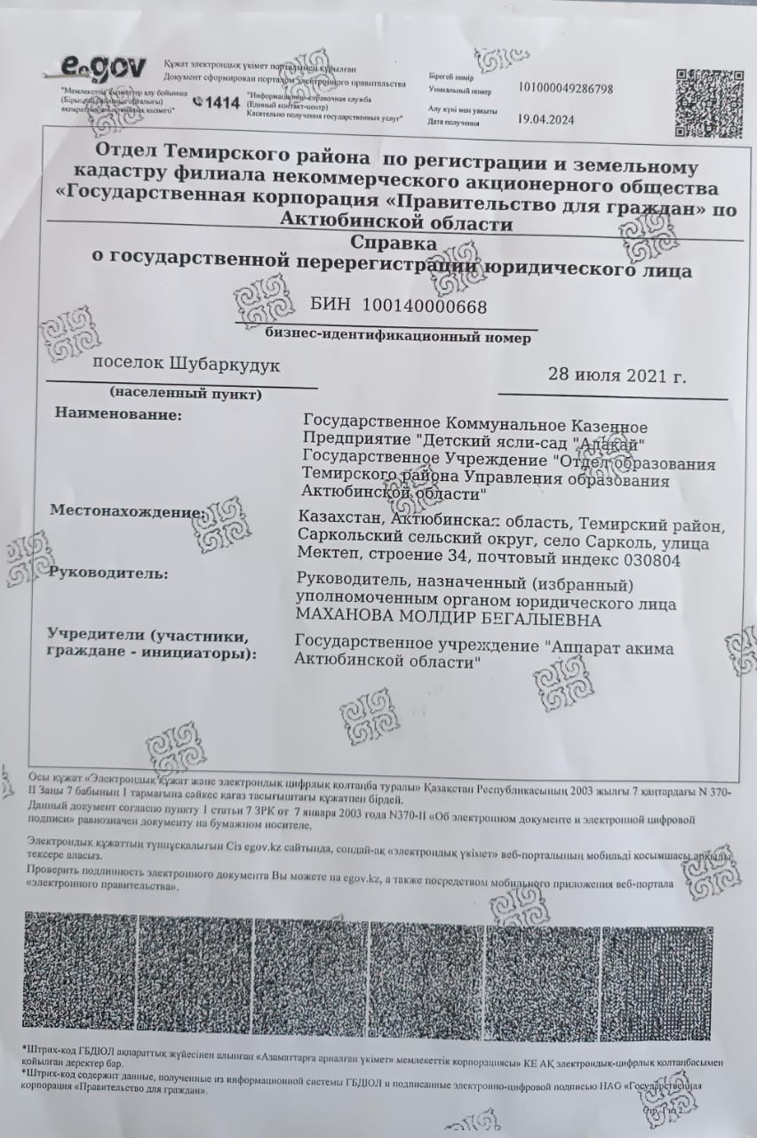 Ақтөбе облысы, Темір ауданы, Саркөл ауылы, Мектеп көшесі стр-е 34. |